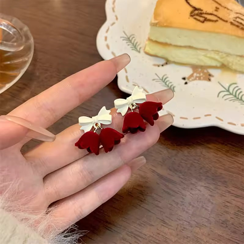korean red flower earring